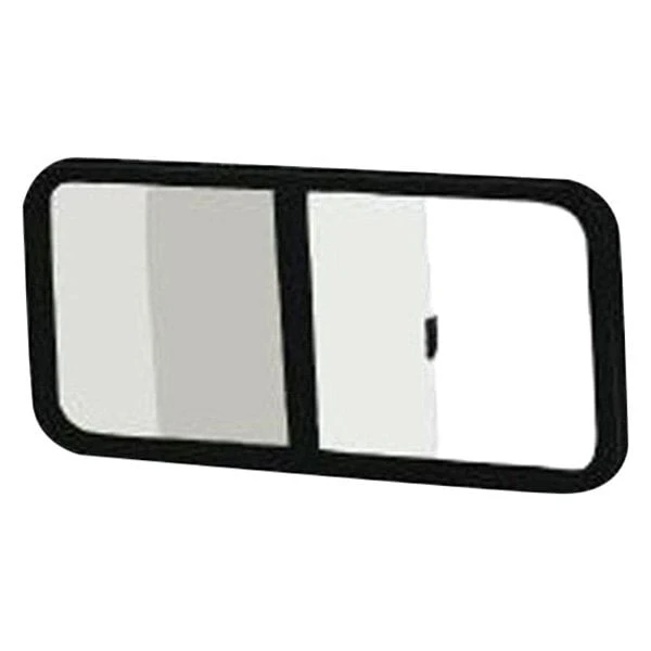 25.25″L x 16.75″H (641 x 425 mm) Horizontal Sliding Window with 2.25″ Trim (VW8249) by C.R. Laurence®. CRL Flat Surface Windows are the “all-purpose solution” to ventilate and increase visibility in just about any vehicle with flat walls. The frames are made of extruded aluminum with a black powder-coated finish. The metal is then formed to surround 28 Solar Privacy Glass. The sliding panel has a positive locking latch for security, and the ventilating panel is screened to let air in and keep bugs out.