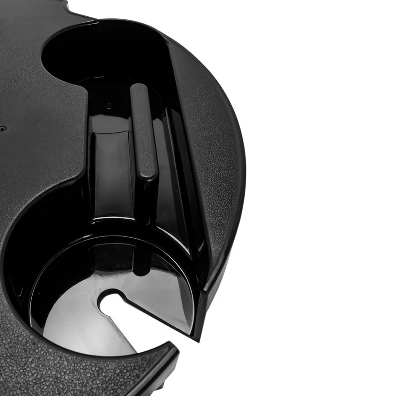 Zero Gravity Black Chair Tray by Camco®. The Camco Zero Gravity Chair Tray easily attaches to your Zero Gravity Chair to provide a convenient place to set snacks and drinks. It is designed with two cup holders, one of which is compatible with stemmed drinkware such as wine, margarita and martini glasses. The top of the tray is textured, to help prevent items from sliding around, and the drainage holes in each cup holder prevent condensation from pooling under your cold drinks. An integrated hook is great for hanging bags or cameras. The tray is made of lightweight polypropylene and has UV protection to help prevent fading over time.