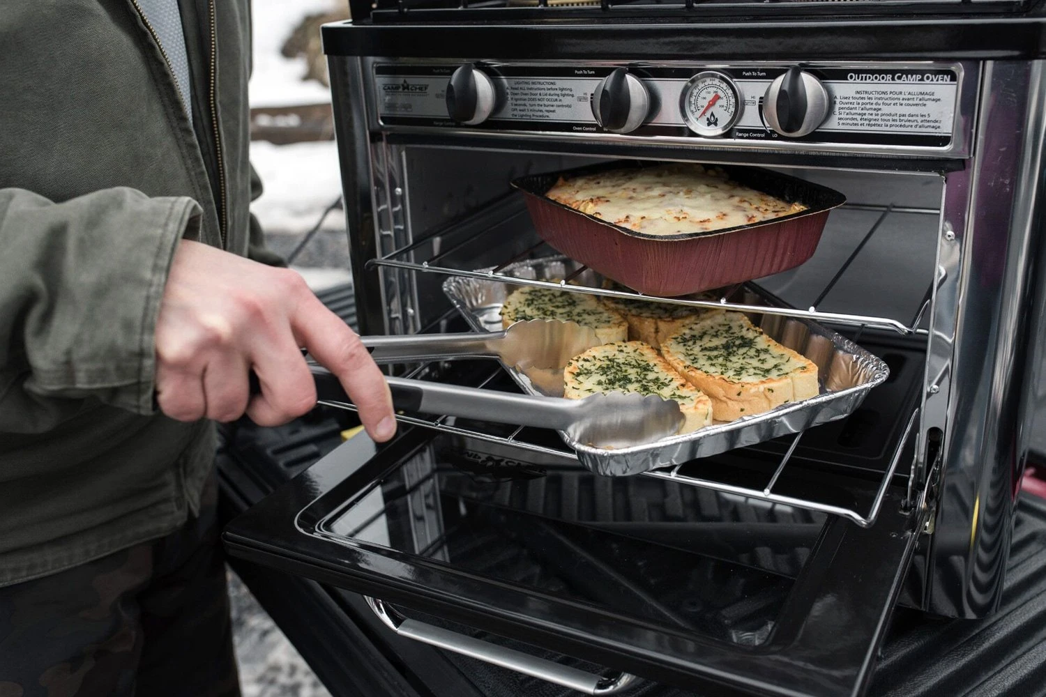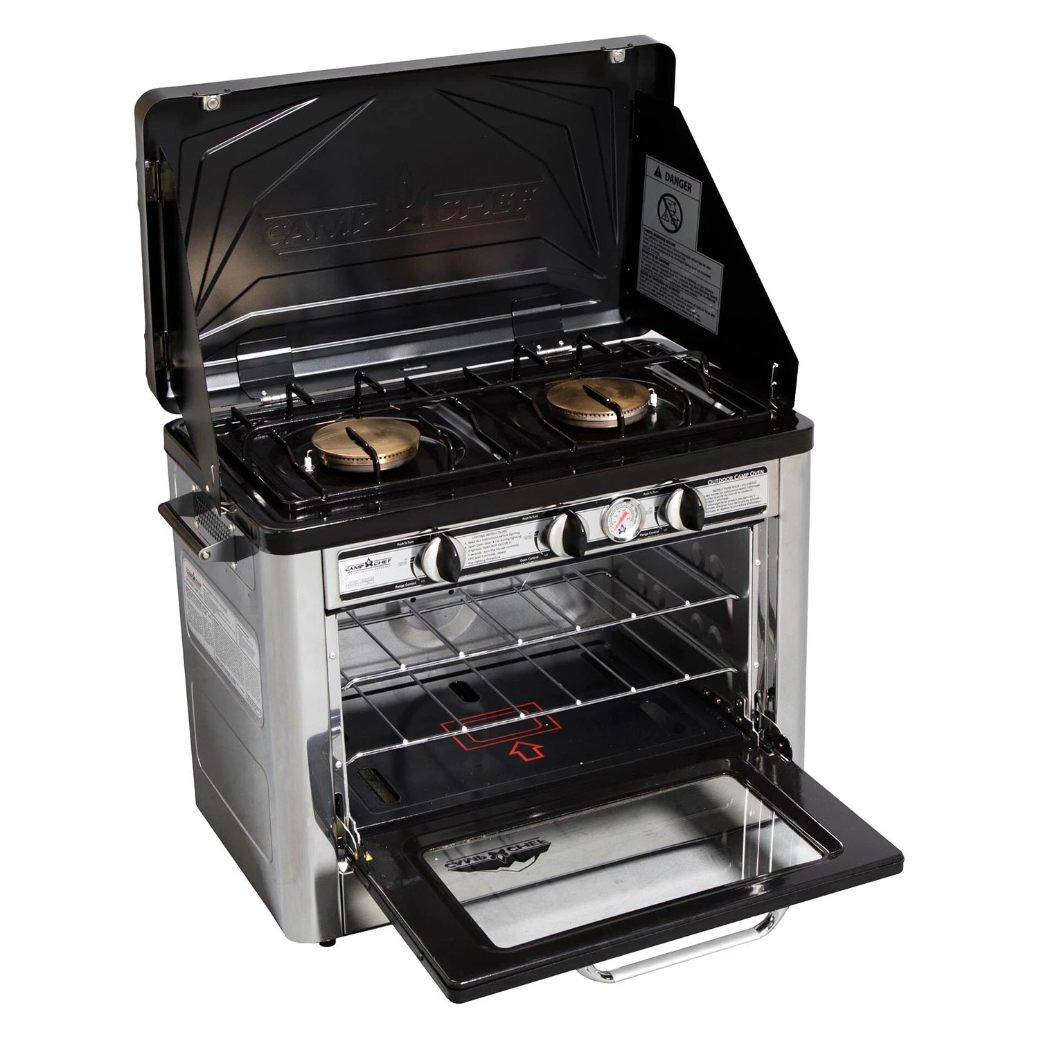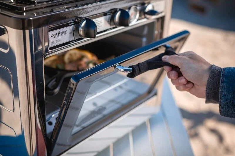 Deluxe Outdoor Oven by Camp Chef®. S’mores over a campfire aren’t your only option when it comes to tasty treats at the campsite. When you bring along Deluxe Outdoor Oven, the cooking possibilities are endless. This oven unlocks capabilities of a home oven and range. Designed to be both portable and versatile, the Deluxe Outdoor Oven provides you with enough heat to cook anything from a breakfast skillet to your fresh cinnamon rolls. It’s perfect for camping, emergency preparedness, tailgating, and more. The oven can reach temperatures up to 400º F and will easily fit a 9 x 13 pan. With a 1 lb. propane bottle, you can hold a temperature of 350º F for up to 7 hours. Add a camping oven to your collection today.