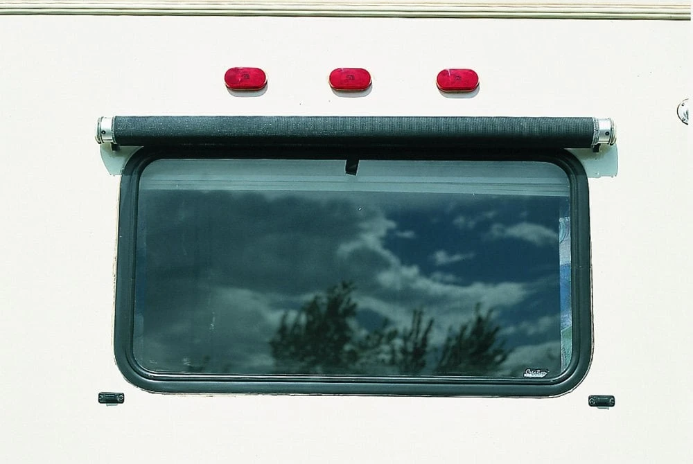 SunShade™ Black Polypropylene Rear Window Shade (KV0360455) by Carefree®. For rear windows and picture windows. Beat the heat with a SunShade! Sometimes that rear window heats up like an oven! Our exterior rolls up for travel and rolls down for camping. Unlike window awnings, it shades and covers 100 Percent of the glass on your window. So your RV stays even cooler. You block the heat and keep your view. In the daytime you can see out, but people can’t see in. Most RVs have a rear bedroom window and you can’t put a window awning over it because the ladder blocks the arms