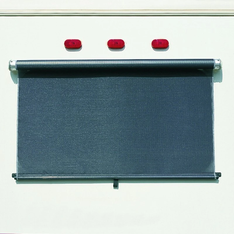 SunShade™ Black Polypropylene Rear Window Shade (KV0420455) by Carefree®. For rear windows and picture windows. Beat the heat with a SunShade! Sometimes that rear window heats up like an oven! Our exterior rolls up for travel and rolls down for camping. Unlike window awnings, it shades and covers 100 Percent of the glass on your window. So your RV stays even cooler. You block the heat and keep your view. In the daytime you can see out, but people can’t see in. Most RVs have a rear bedroom window and you can’t put a window awning over it because the ladder blocks the arms