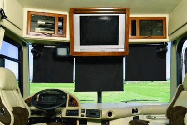 Power SmartVisor™ Black Polypropylene Right Electric Windshield Shade (YS054QA36R-RP) by Carefree®. Block the early morning or late afternoon sun coming through your windshield with the push of a button!
