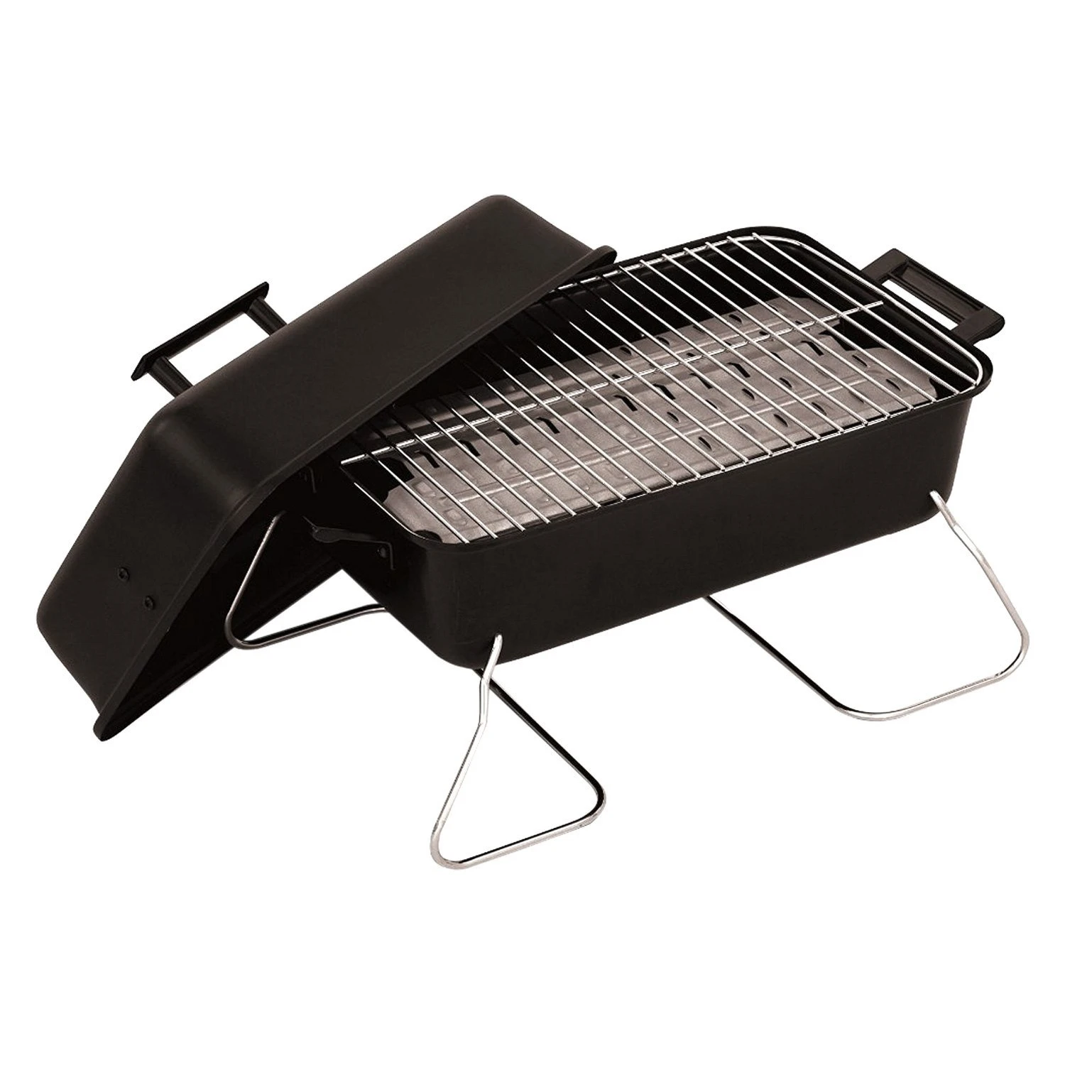 190 Portable Charcoal Grill (465131014) by Char-Broil®. Powered by charcoal briquettes or lump charcoal. Look no further than the Portable Tabletop charcoal grill. Features include chrome-plated steel wire cooking grates. The grill folds up compactly and sets up easily so you can take your grill with you when you’re tailgating, camping or on the beach.