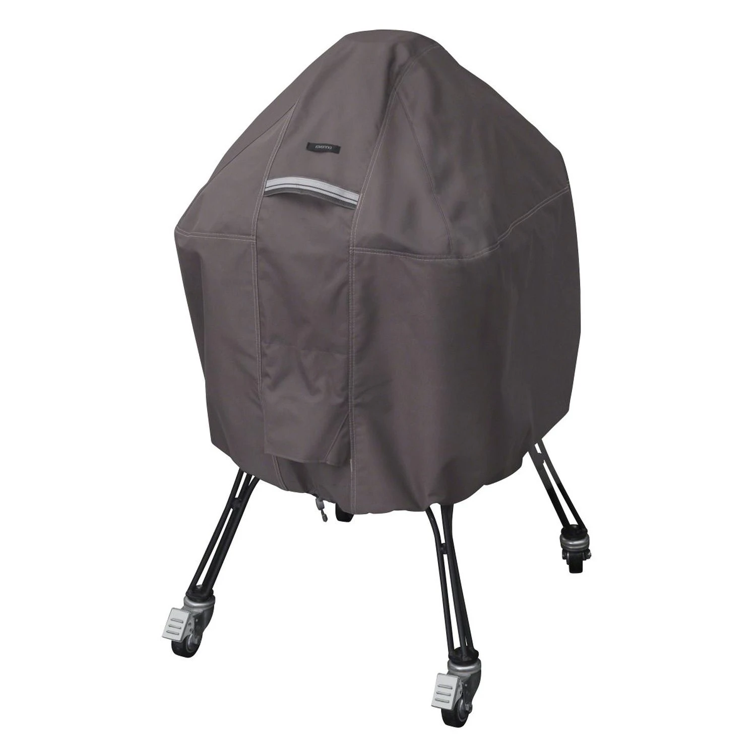 Ravenna™ Taupe Large Kamado Grill Cover for Big Green Egg™ Grill (22″Dia x 40″H) by Classic Accessories®. Protect your grill with this premium cover. Durable fabric ensures outstanding protection in any conditions while offering great looks. It features air vents that reduce condensation and prevent the cover from ballooning. The cover has padded handles for easy fitting and removal