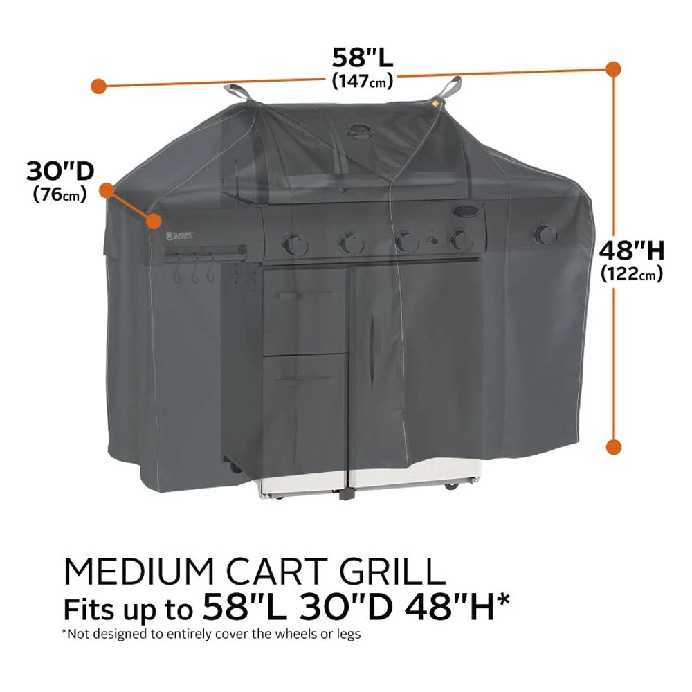 Storigami Easy Fold Charcoal Black Medium BBQ Grill Cover (58″W x 30″D x 48″H) by Classic Accessories®. Neat, structured, and convenient, these covers use purposeful seams to allow the cover to collapse along mountain and valley lines, creating an intuitive cover handling system, allowing you to fold your cover down to a manageable size every time. Storigami™ covers are for anyone who appreciates storage efficiency and maintaining a tidy home. Let Storigami™ streamline your process, so you can Uncover More Time Outdoors™
