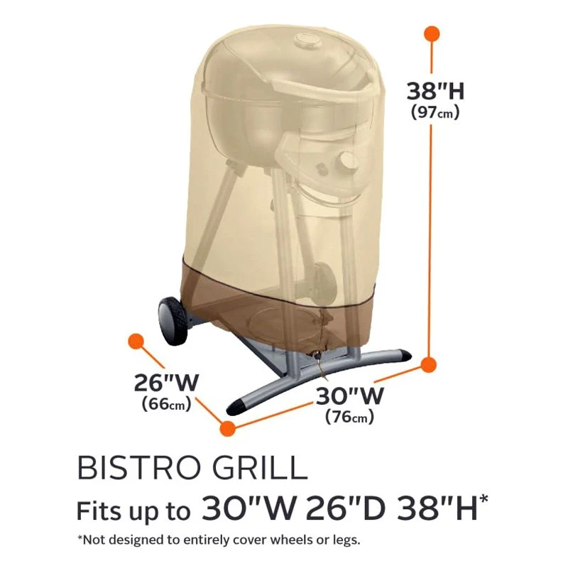 Veranda™ Pebble Bistro Grill Cover (30″L x 26″W x 38″H) by Classic Accessories®. This top-grade product is expertly made in compliance with stringent industry standards to offer a fusion of a well-balanced design and high level of craftsmanship. Manufactured from industry-leading materials using up-to-date equipment, it ensures everlasting reliability and enduring value. This product is distinguished by total quality assurance, unsurpassed by anybody else