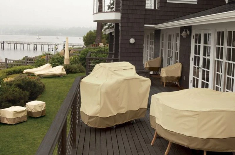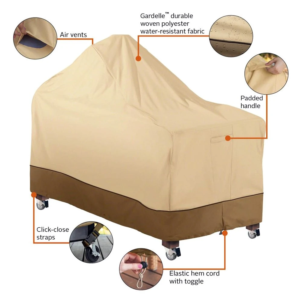 Veranda™ Pebble Large BBQ Grill Dome with Side Table Cover (60″L x 30″W x 50″H) by Classic Accessories®. A customer favorite for its fashionable design, durability and extensive collection of matching products, the Veranda line features our heavyweight Gardelle™ woven polyester fabric and special water-repellent and resistant undercoating.