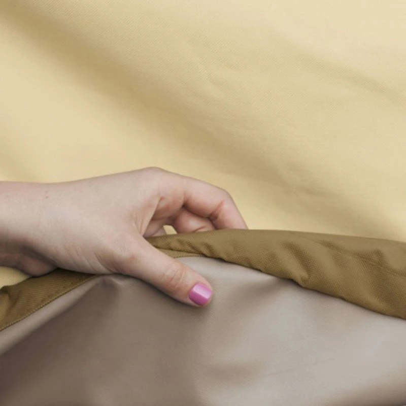 - Gardelle™ fabric features an elegant water-repellent fabric top with a protective water-resistant laminated undercoating and a protective dark splash guard skirt