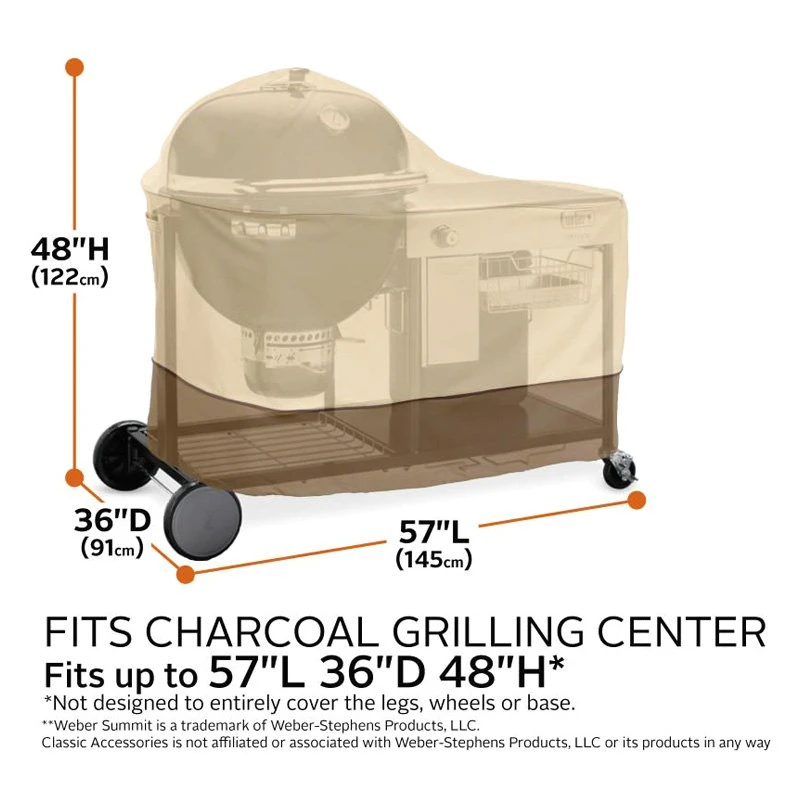 Veranda™ Pebble Small Island Grill Top Cover for Weber Summit Grill (57″L x 36″W x 48″H) by Classic Accessories®. This top-grade product is expertly made in compliance with stringent industry standards to offer a fusion of a well-balanced design and high level of craftsmanship. Manufactured from industry-leading materials using up-to-date equipment, it ensures everlasting reliability and enduring value. This product is distinguished by total quality assurance, unsurpassed by anybody else