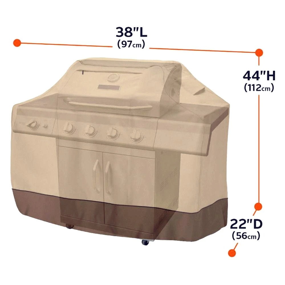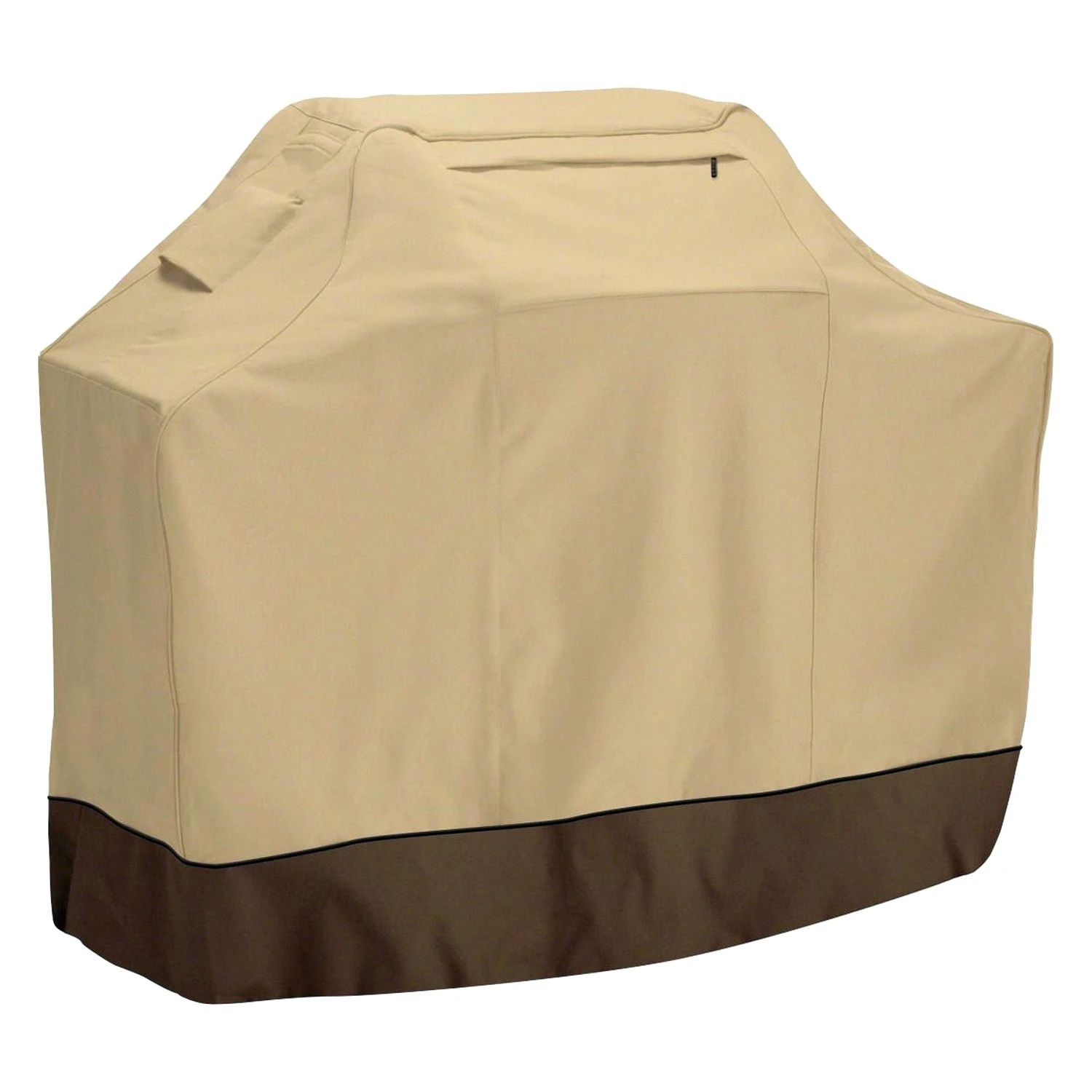 Veranda™ Pebble X-Small BBQ Grill Cover (38″L x 22″W x 44″H) by Classic Accessories®. A customer favorite for its fashionable design, durability and extensive collection of matching products, the Veranda line features our heavyweight Gardelle™ woven polyester fabric and special water-repellent and resistant undercoating.
