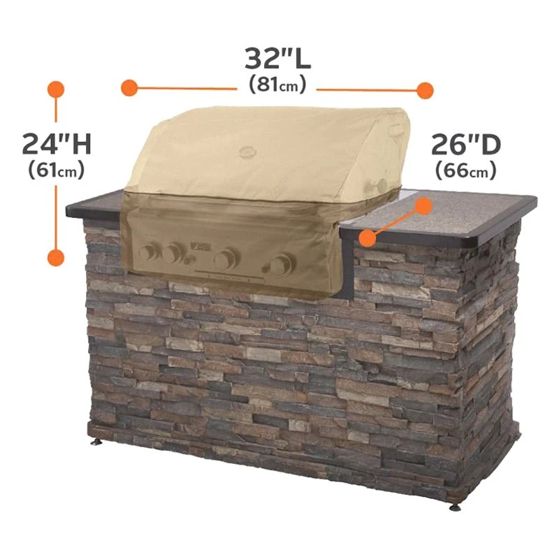 Veranda™ Pebble X-Small Built-In Grill Cover (32″L x 26″W x 24″H) by Classic Accessories®. A customer favorite for its fashionable design, durability and extensive collection of covers, the Veranda line features our heavyweight Gardelle™ woven polyester fabric and special water-repellent and resistant undercoating.