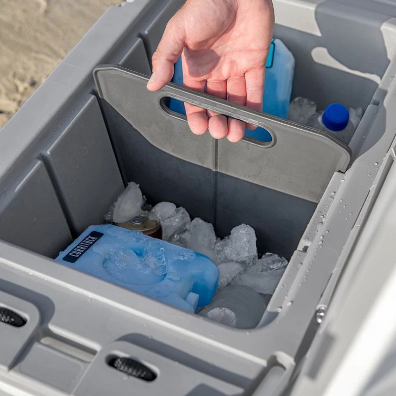 30 qt Cooler Divider by Currituck®. The Currituck 30 qt Cooler Divider creates a barrier between the two sides of your Currituck cooler. It easily slides into the interior cooler grooves to securely stay in place. The interior of the Currituck Cooler has three divider grooves for goods of all shapes and sizes. Compatible with 30 qt Currituck Coolers and made from durable, UV-resistant material.