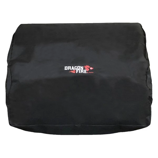 Black BBQ Grill Cover 32″ (DFVC32B) by Dragon Fire Grills®. Dragon Fire Grill Covers have been designed to work specifically with our Dragon Fire Grills and Carts. The outer side of the cover is constructed of black heavy-duty polyester – that is both durable and easy to maintain – and has a silk screened Dragon Fire logo. The inner side of the cover is made with a soft PVC lining that will not scratch or damage your grill or cart.