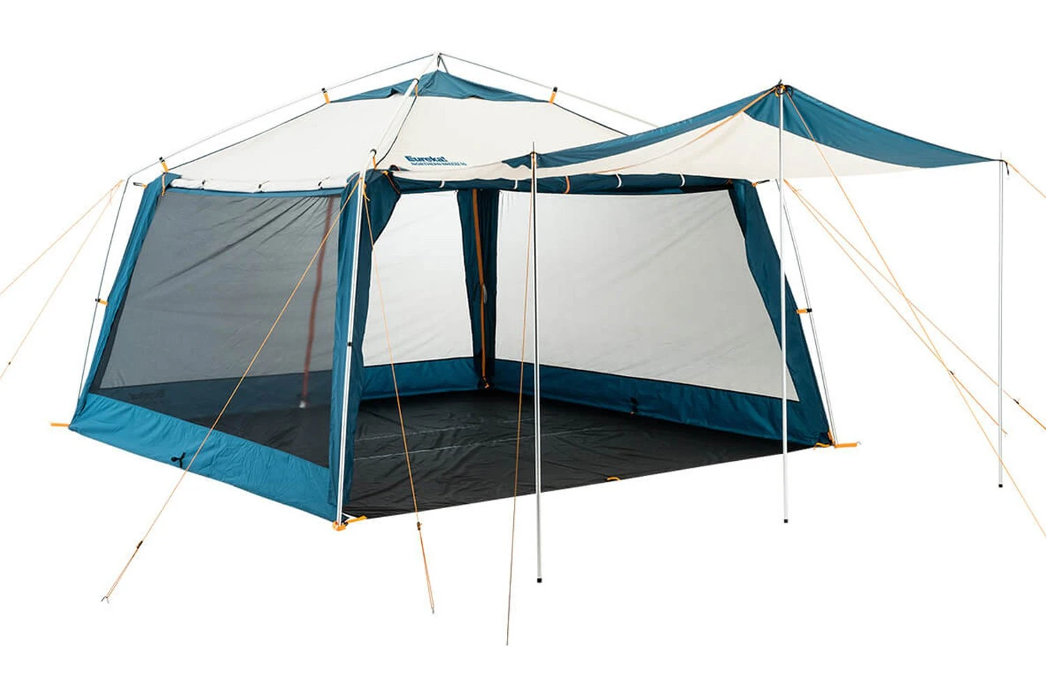 Northern Breeze™ 10′ x 10′ Screen House by Eureka®. VERSATILE AND DURABLE PROTECTION FROM SUN, WIND, BUGS AND RAIN MAKES CAMPING A BREEZE. The Northern Breeze has a durable, waterproof design that offers the whole crew comfort and protection from whatever mother nature throws your way. With features like an integrated awning and versatile setup options, it is the perfect companion for all group camping trips.