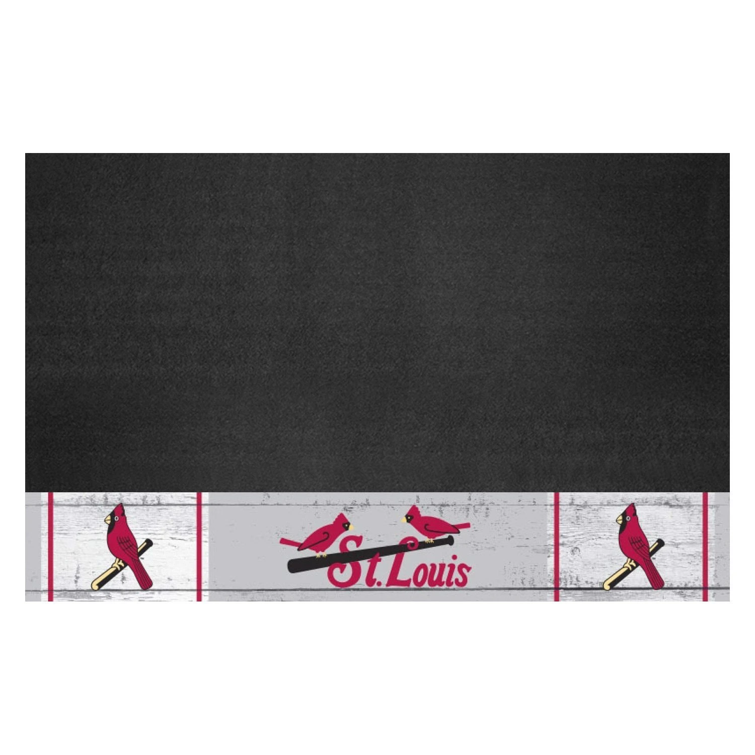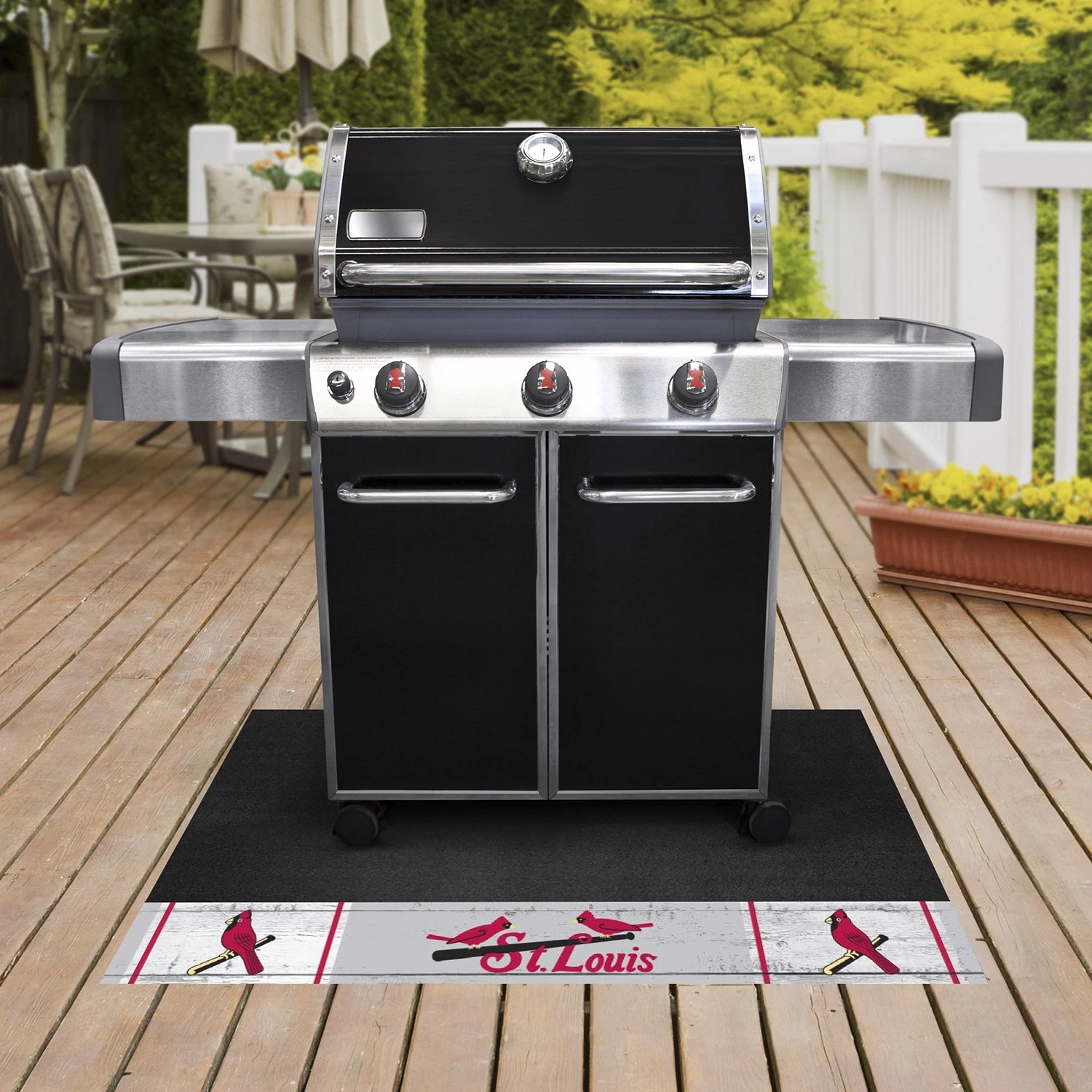 MLB “1930 St. Louis Cardinals” 26″ x 42″ Retro Grill Mat (1798) by FanMats®. Then Grill Mats by Sports Licensing Solutions were made for you. Both practical and decorative, they protect your deck or patio while displaying your favorite MLB Retro Logo! These 100% vinyl Grill Mats fit under most grills, prevents spills from soaking in and staining, and cleans up easily with a garden hose. Keep the mat clean by spraying with water and wiping with a soapy cloth. Not to be used on composite decking material. Made in the USA.