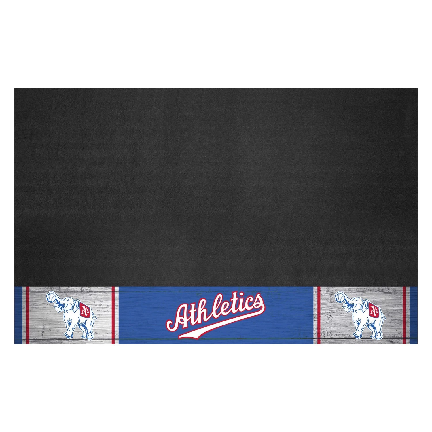 MLB “1954 Philadelphia Athletics” 26″ x 42″ Retro Grill Mat (1912) by FanMats®. Then Grill Mats by Sports Licensing Solutions were made for you. Both practical and decorative, they protect your deck or patio while displaying your favorite MLB Retro Logo! These 100% vinyl Grill Mats fit under most grills, prevents spills from soaking in and staining, and cleans up easily with a garden hose. Keep the mat clean by spraying with water and wiping with a soapy cloth. Not to be used on composite decking material. Made in the USA.