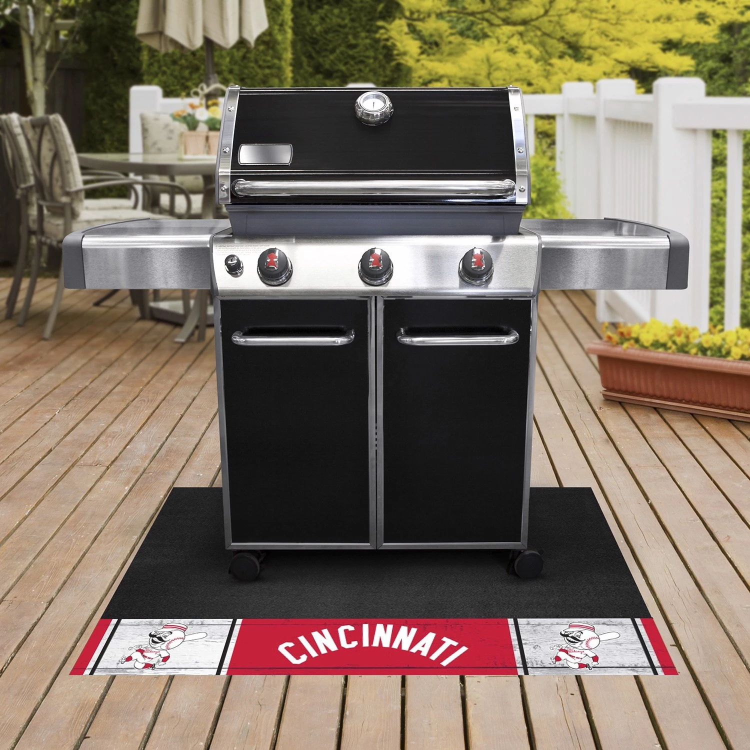 MLB “1967 Cincinnati Reds” 26″ x 42″ Retro Grill Mat (1988) by FanMats®. Then Grill Mats by Sports Licensing Solutions were made for you. Both practical and decorative, they protect your deck or patio while displaying your favorite MLB Retro Logo! These 100% vinyl Grill Mats fit under most grills, prevents spills from soaking in and staining, and cleans up easily with a garden hose. Keep the mat clean by spraying with water and wiping with a soapy cloth. Not to be used on composite decking material. Made in the USA.
