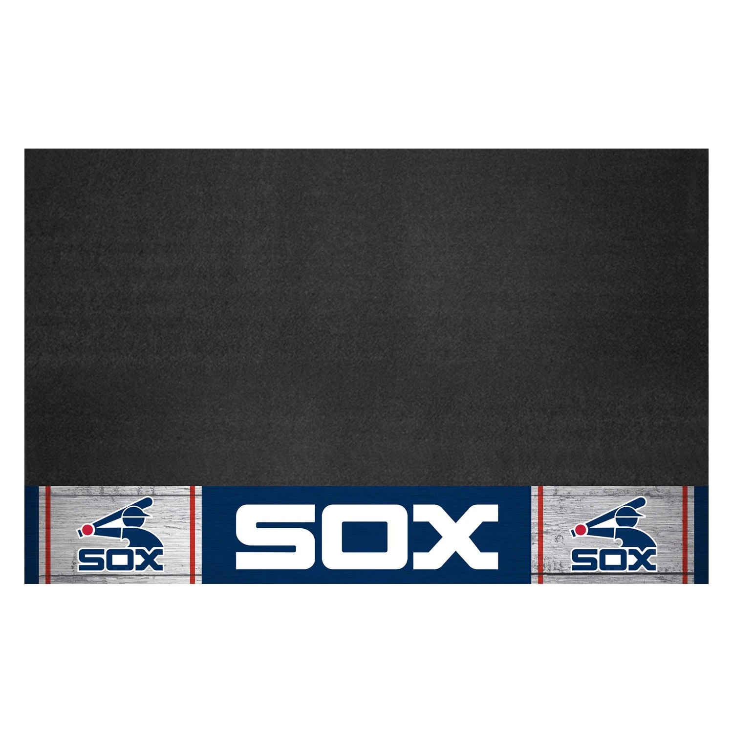 MLB “1982 Chicago White Sox” 26″ x 42″ Retro Grill Mat (2155) by FanMats®. Then Grill Mats by Sports Licensing Solutions were made for you. Both practical and decorative, they protect your deck or patio while displaying your favorite MLB Retro Logo! These 100% vinyl Grill Mats fit under most grills, prevents spills from soaking in and staining, and cleans up easily with a garden hose. Keep the mat clean by spraying with water and wiping with a soapy cloth. Not to be used on composite decking material. Made in the USA.