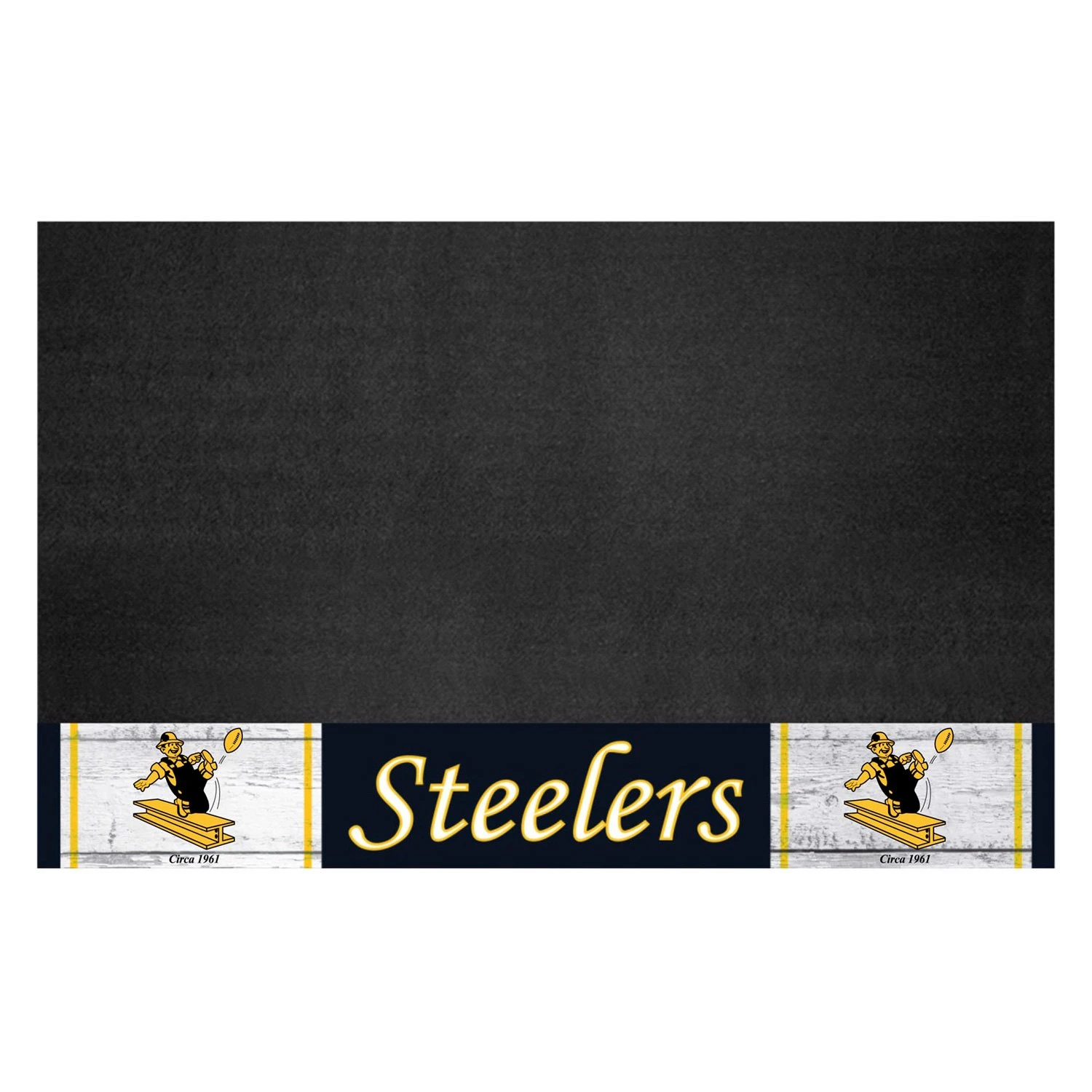 NFL “Pittsburgh Steelers” 26″ x 42″ Grill Mat with “Kicking Steeler” Logo (32659) by FanMats®. Are you a die-hard sports fan that likes to show off your team pride even while grilling? Then Grill Mats by Sports Licensing Solutions were made for you. Both practical and decorative, they protect your deck or patio while displaying your favorite team!