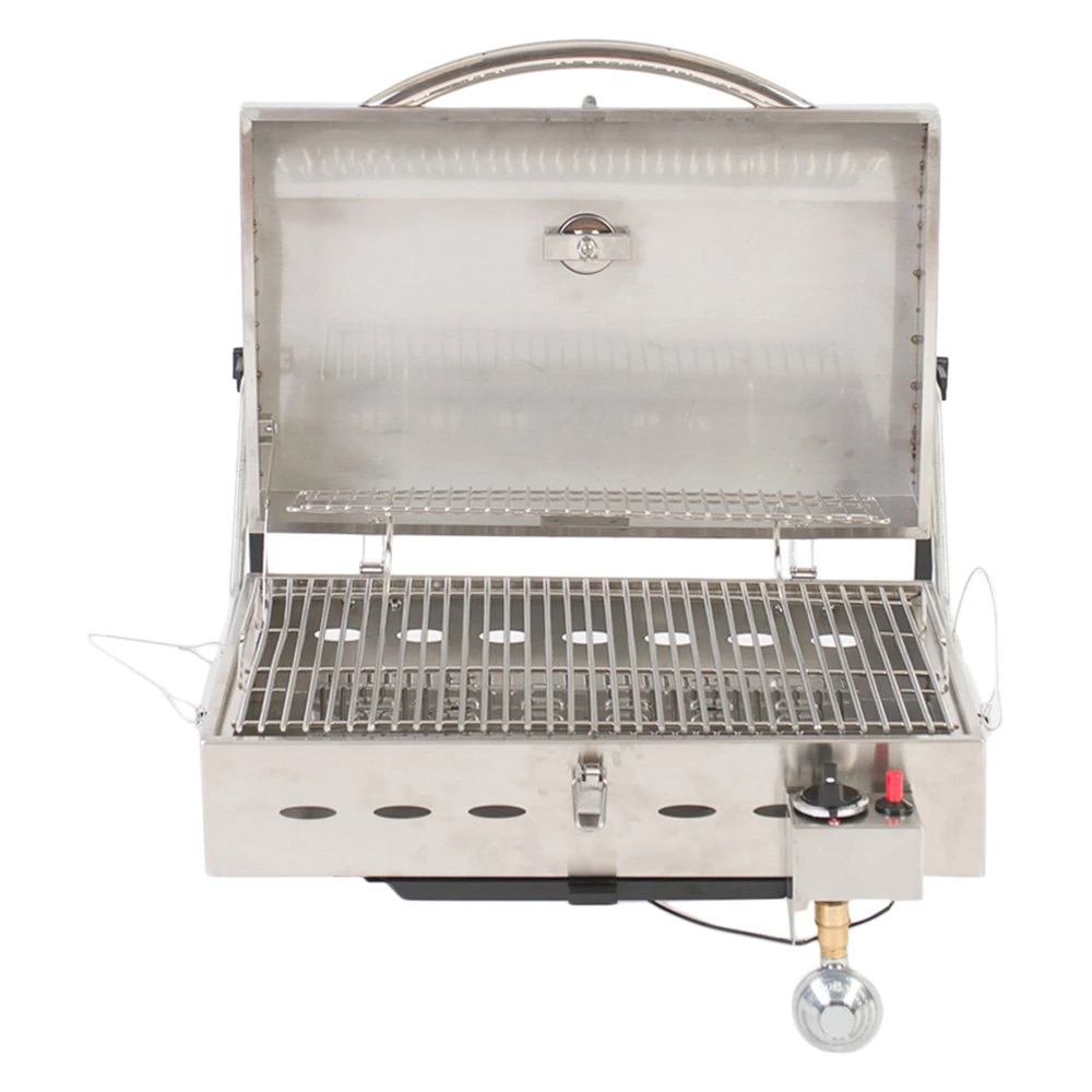 Deluxe Chrome Gas Grill with LP Bottle Adapter (52302) by Faulkner®. With Adapter (for disposable LP bottles). This top-grade product is expertly made in compliance with stringent industry standards to offer a fusion of a well-balanced design and high level of craftsmanship. Manufactured from industry-leading materials using up-to-date equipment, it ensures everlasting reliability and enduring value. This product is distinguished by total quality assurance, unsurpassed by anybody else.