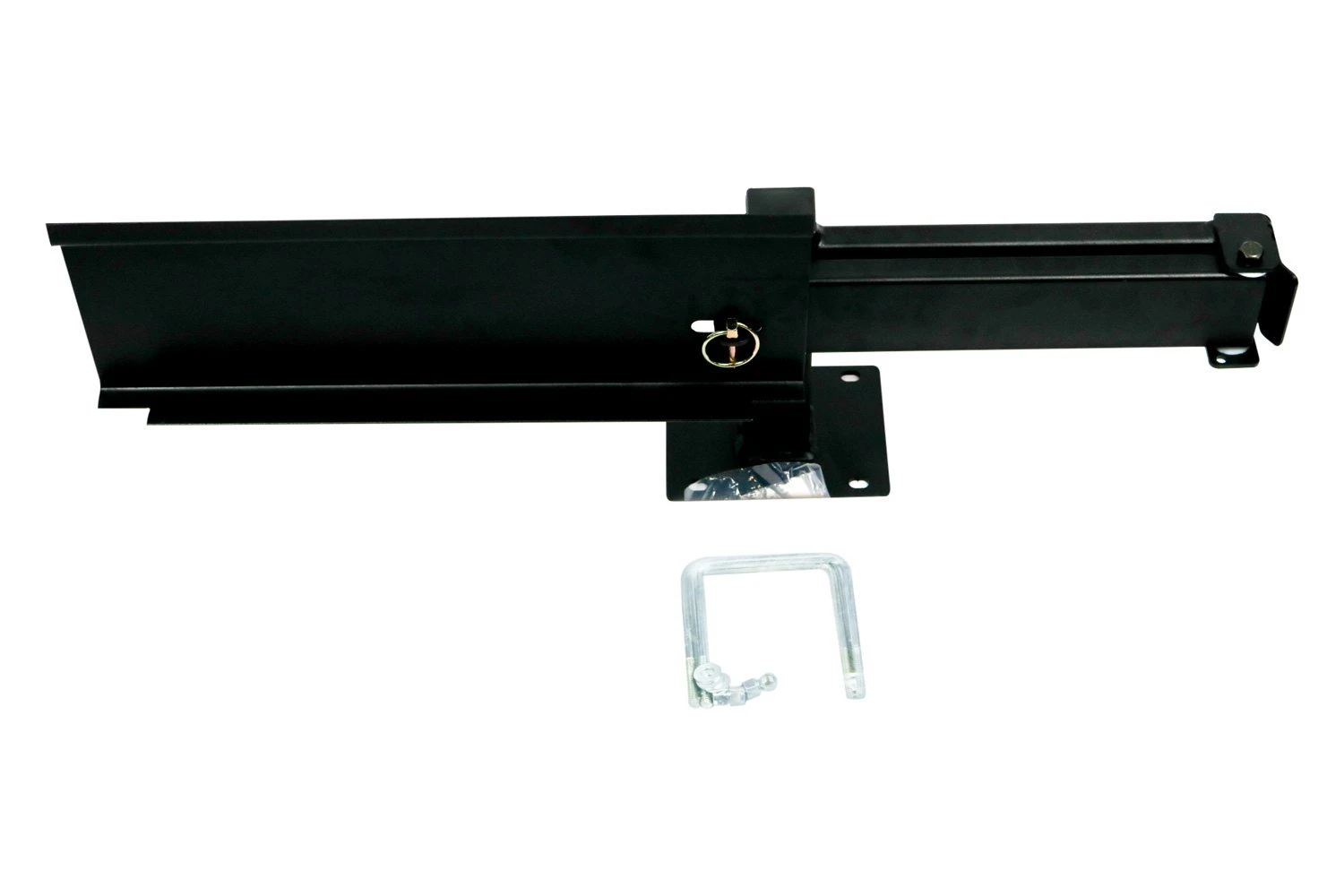 Bumper Grill Arm Assembly (52321) by Fleming Sales®. Bracket Assembly used to attached grill to RV bumper or use with bumper grill table. New 14-gauge black steel bumper grill arm assembly for use with grills that use a slot and bracket arms for grill support.
