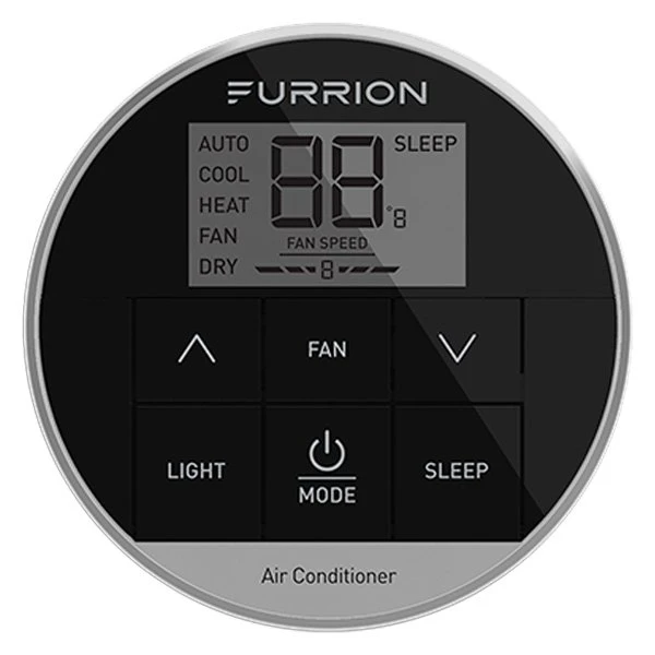 Furrion® – Chill™ Black Single Zone Premium Wall Thermostat by Furrion®. Adjust your in-cabin temperature with this single-zone thermostat featuring three fan speeds and five operating modes. Use this thermostat with the Furrion single zone controller to manage distribution box lighting. With automatic restart, you will be back up and running after any power interruption.