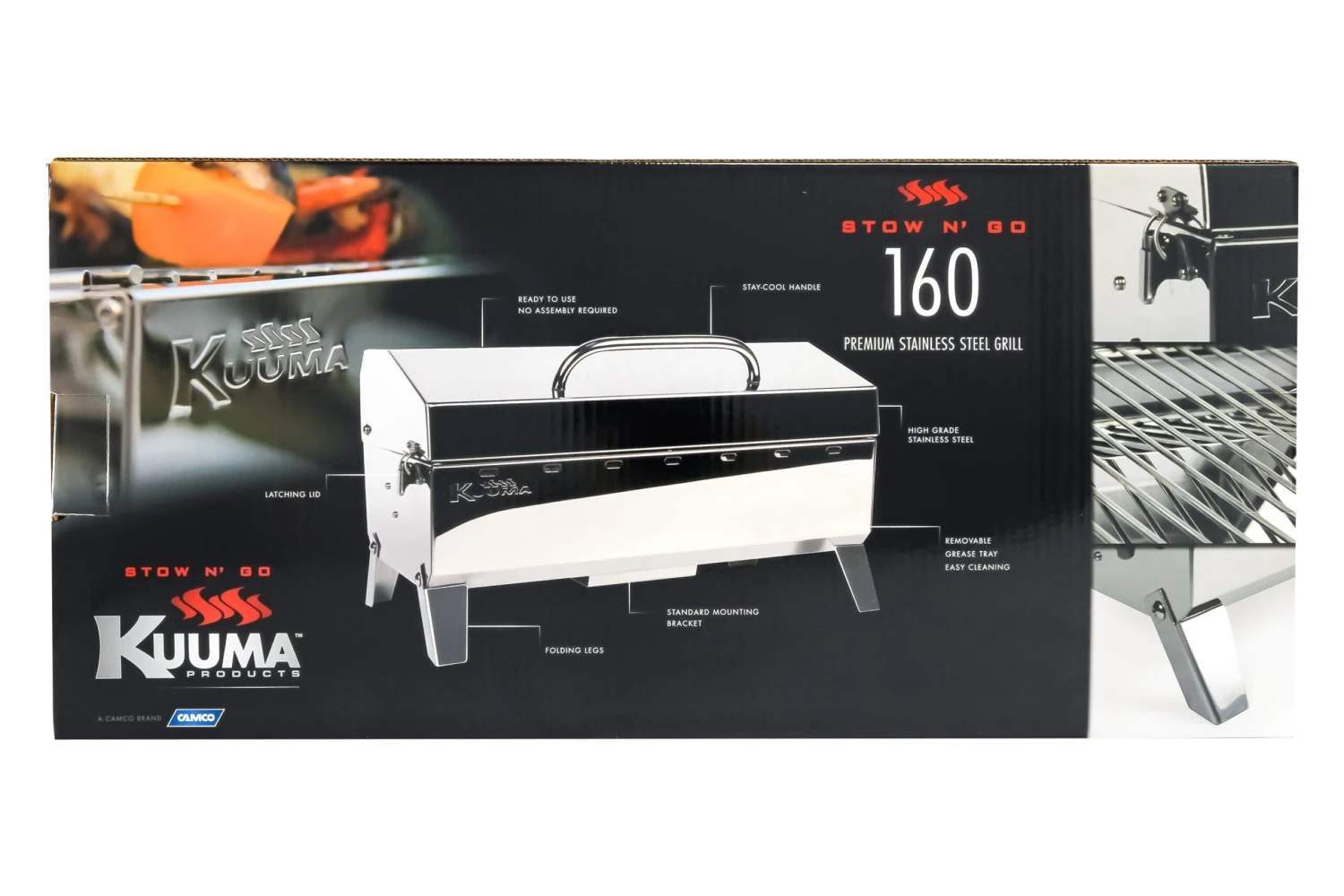 Stow N’ Go 160 Gas Grill (58130) by Kuuma®. The Kuuma Stow N’ Go 160 Grill is an outstanding grill that offers premium-quality construction and convenient portability. Stow N’ Go grills can be easily transported and can also be mounted to any Kuuma rail, rod or pedestal mount. Designed for high pressure, disposable 1 lb. propane canisters or larger refillable tanks with hose attachment. Canisters, tanks and hoses sold separately. Whether you’re a pro or boating for pleasure, make the most out of your boat and time on the water! Built with the highest quality standards and reliability in mind, every product is designed to suit your specific needs and requirements to maximize your enjoyment on the water.