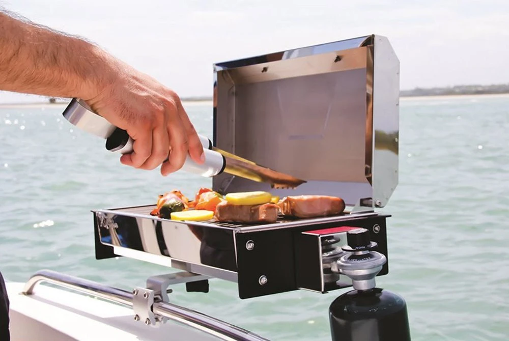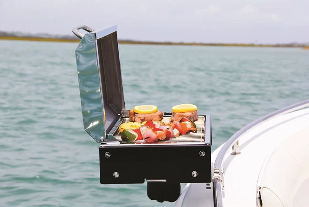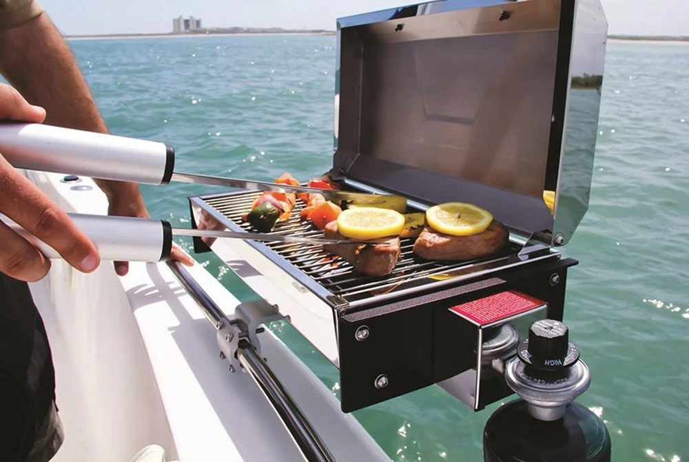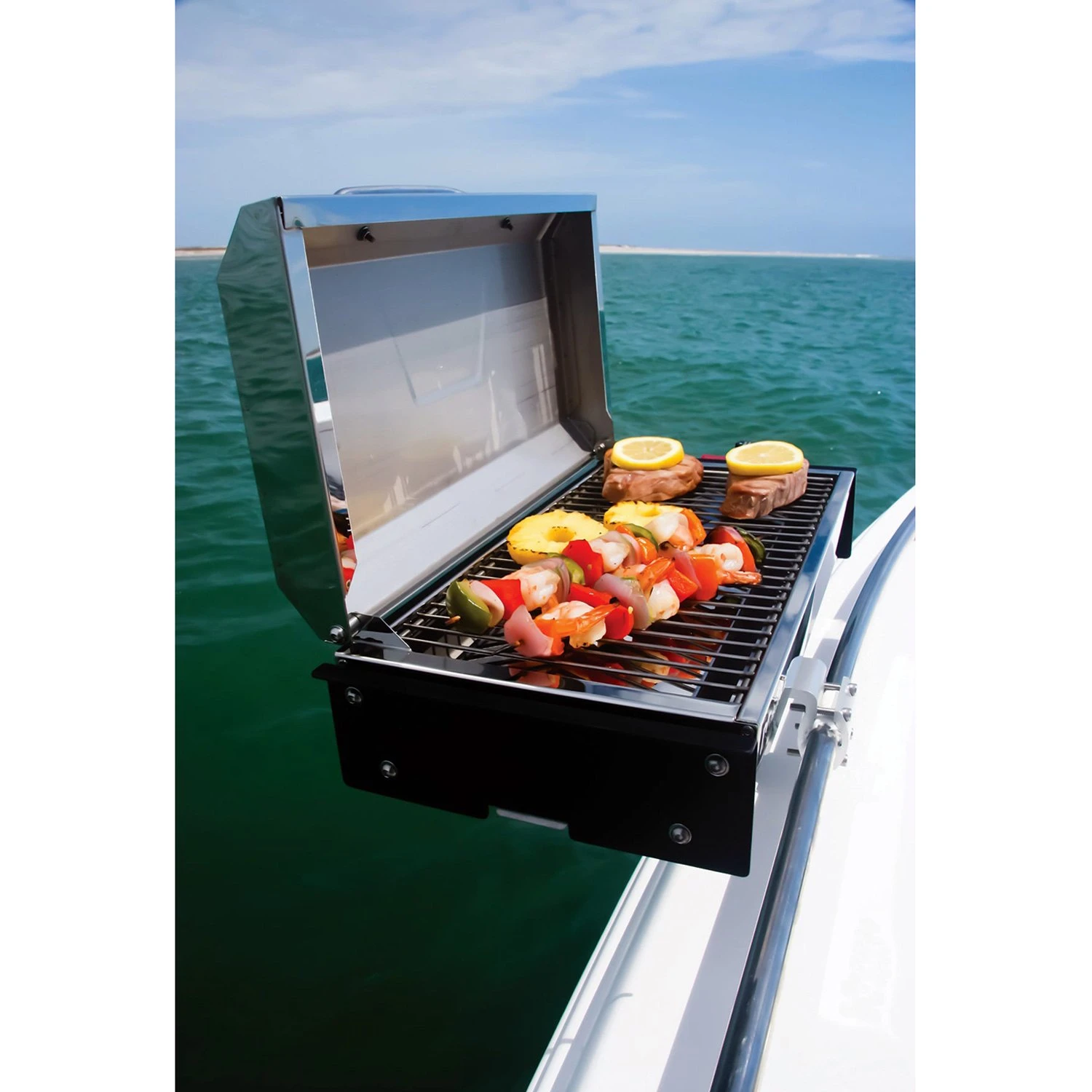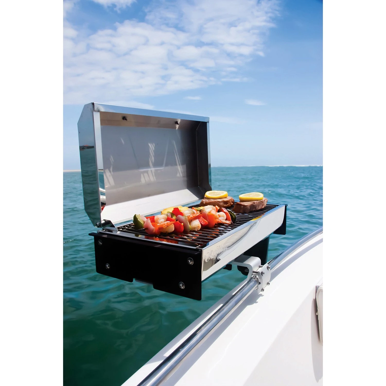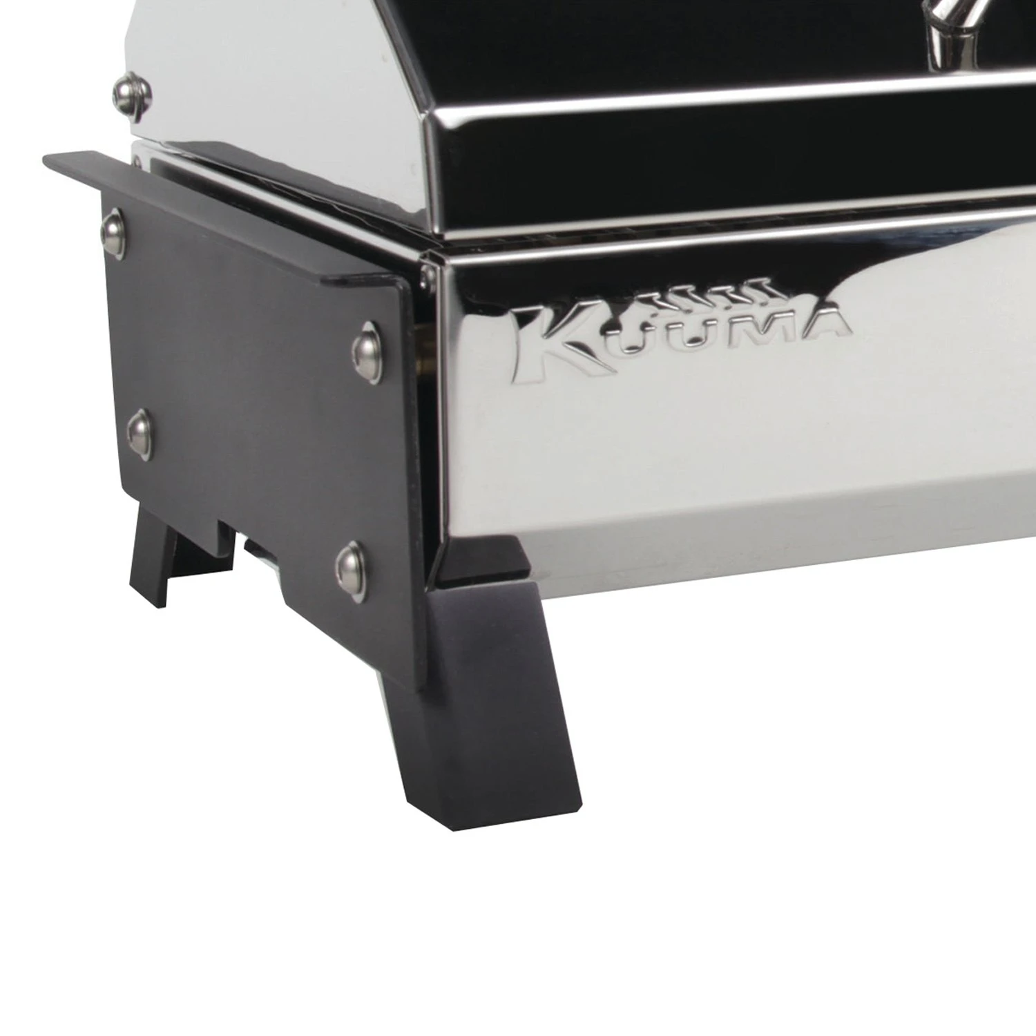 Profile 150 Gas Grill by Kuuma®. The Kuuma Profile 150 Grill is the perfect portable grill for the chef with limited storage space. Its compact size is perfect for when space is at a premium. Profile grills can be easily transported and can also be mounted to any Kuuma rail, rod or pedestal mount. Standard features include stainless steel construction, stay cool handle and integral folding legs and latching lid. Mounts to your boat or RV. Designed for high pressure, disposable 1 lb propane canisters or larger refillable tanks with hose attachment. Canisters, tanks and hoses sold separately.