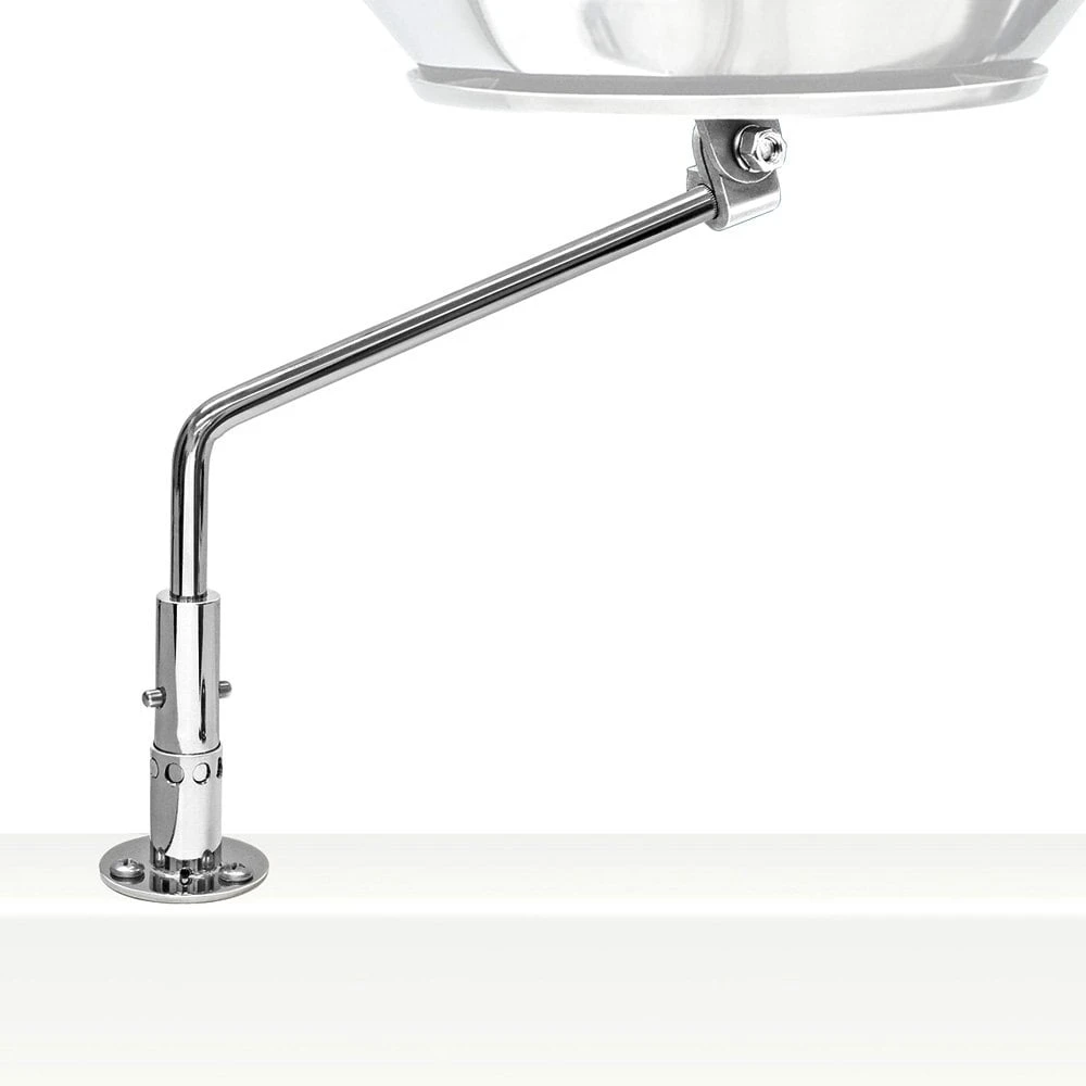 Surface Mounted Rotating Deck Socket Mount (A10-121) by Magma®. Use with ALL Marine Kettle™ Grills. This all 18-8 stainless steel mount can be positioned inboard and outboard and anywhere in between. A stainless detent pin lets the grill rotate and lock in 8 different positions. While the sockets drainage holes prevent unwanted water from collecting.