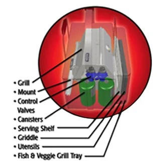 - Large External Compartment Stores up to (3) Disposable 1-lb. Fuel Canisters