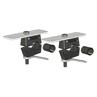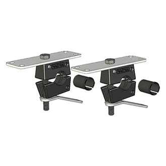 Dual Horizontal Round Rail Mount by Magma®. Heavy Duty. Incredibly strong and rigid, these rail mounts will not slip on the rail. They have a unique pivoting design which allows them to attach to curved rails or across the corner of a stern rail. Made of 18-8 stainless steel and 356 hard anodized aluminum, they instantly detach without tools for compact storage leaving no hardware on the rail.