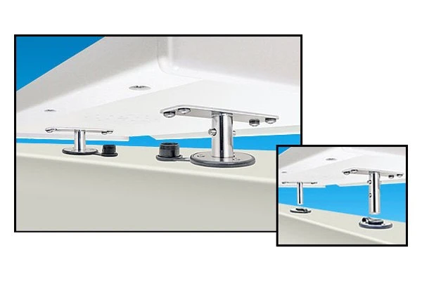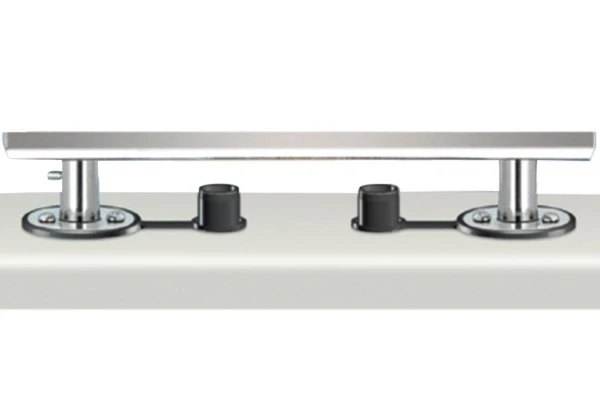 Dual Locking Flush Deck Socket Mount by Magma®. Heavy Duty. Two attractive mirror polished 18-8 stainless steel flush deck socket sets features a push button lock pin to allow use while underway. Includes a flange gasket with integral flip-up water seal cap. Some fasteners required for installation.