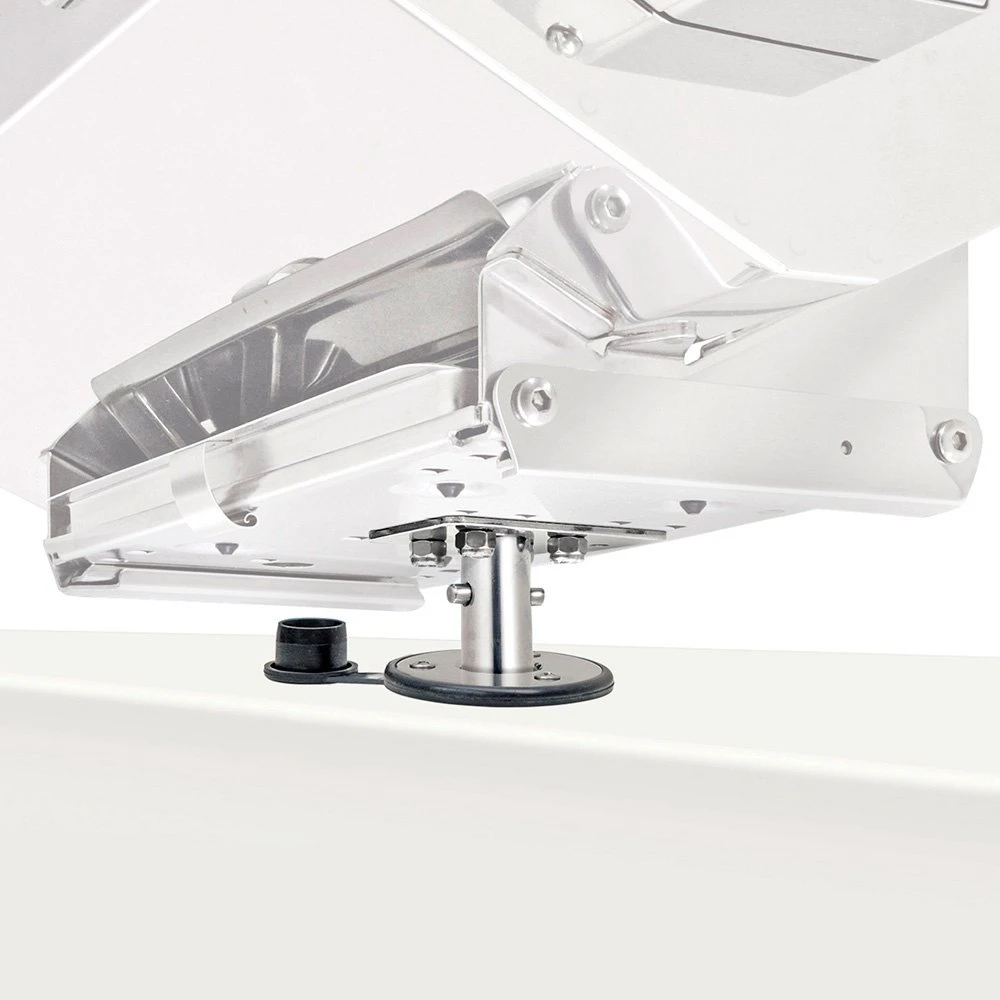 “Single” Locking Flush Deck Socket Mount by Magma®. This attractive mirror polished 18-8 stainless steel flush deck socket set features a push button lock pin and includes a flange gasket with integral flip-up water seal cap
