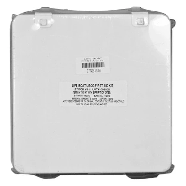 Life Boat First Aid Kit by Orion Signal Products®. Orion has developed a line of USCG approved first aid kits for commercial vessels. They contain everything that is recommended by the USCG to be included in life boats. The commercial first aid kit is packed in waterproof, impact resistant polypropylene case that will not crack in severe cold conditions. This kit has been exposed to salt water for 24 hours and submerged to insure the case integrity, in the most severe conditions. The contents are individually boxed and packed in waterproof bags. Meets the USCG requirements 46 CFR 160.041 contents and construction.