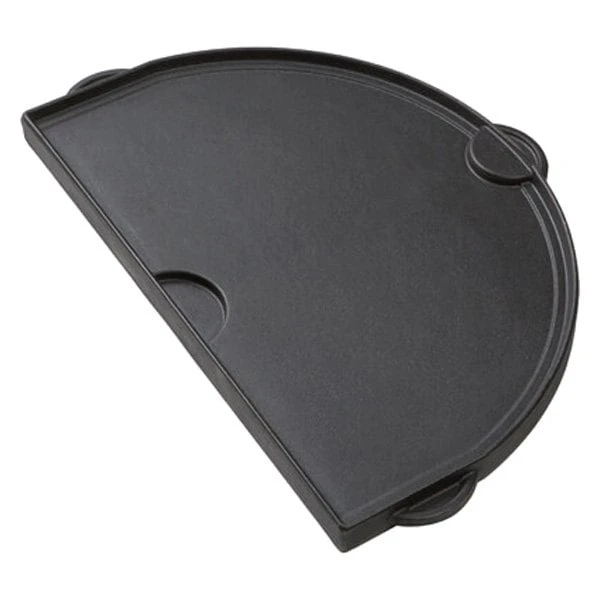 1-Piece Cast Iron Griddle by Primo Grills®. This dual-purpose half-moon Cast Iron Griddle with a smooth and a grooved side allows you to fry, sear and sauté. It offers higher heat retention, even heat distribution, and faster cooking times.