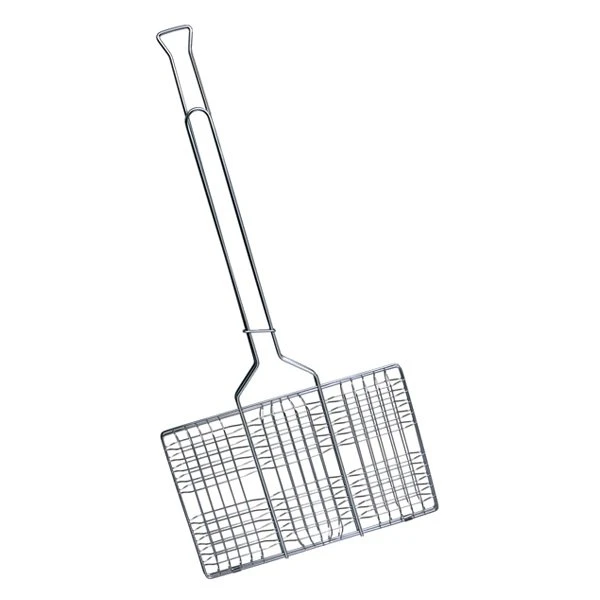 9″ x 13″ Chrome Plated Steel Hamburger Grill Basket by Rome®. Six wire “pockets” for easily grilling burgers, chops & crab cakes.. anything that’s about 1″ thick. 9″ X 13″ basket, overall length 29″. Made from chrome plated wire.