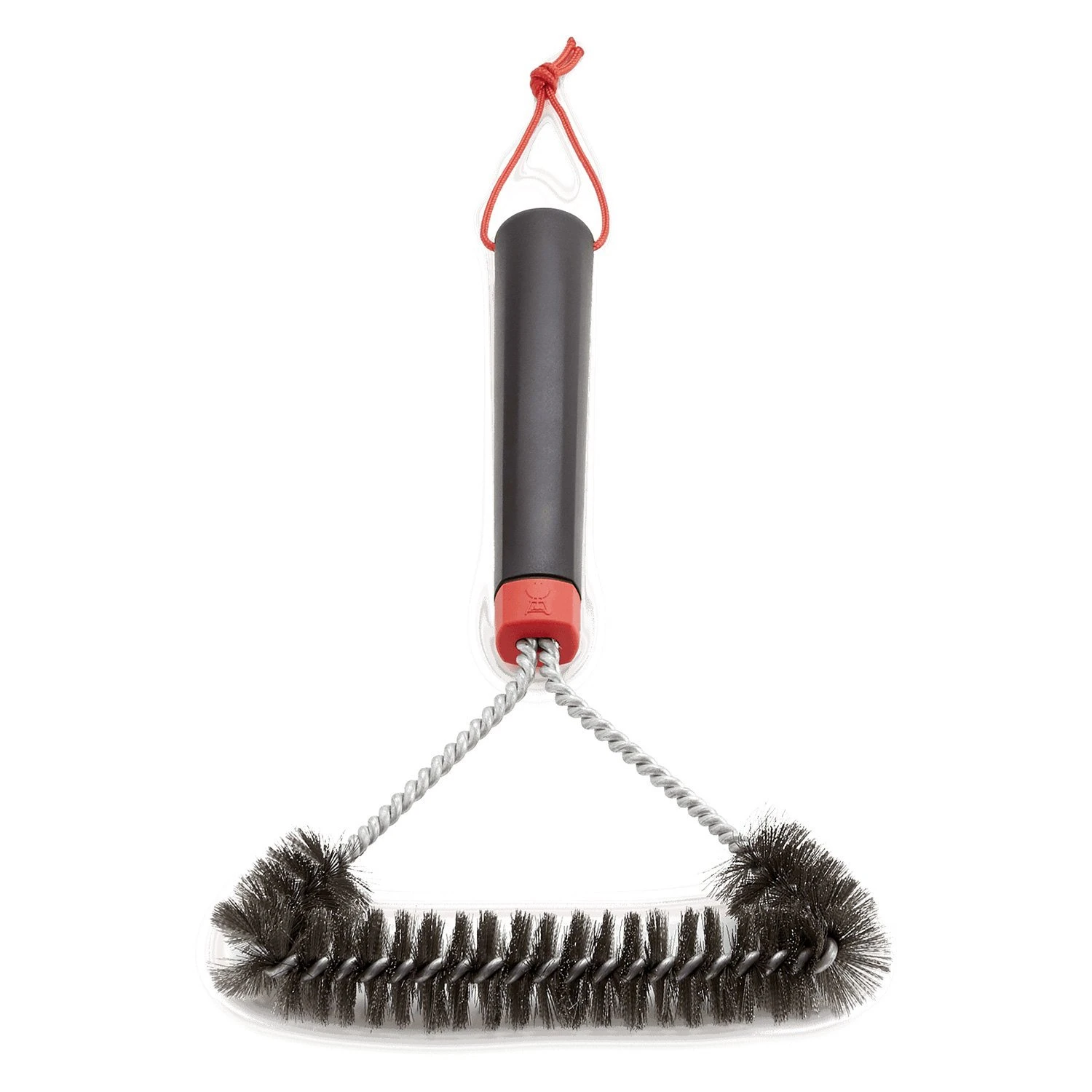 12″ Three-Sided Grill Brush (6277) by Weber®. This three-sided grill brush is made to remove grease and debris from cooking grates of all sizes. The handle design provides a secure grip when brushing off stuck-on food or cleaning tight spaces. Use this grill brush to clean your grates before each use so that your grill lasts longer and your next meal is as delicious as the one before.