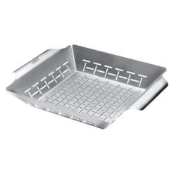 Deluxe Large Grilling Basket (6434) by Weber®. Vibrant, grilled vegetables scattered atop a crispy pizza. Charred zucchini and squash that compliment your favorite autumn feast. Or an array of diced veggies delicately seared to bring out flavors you never knew existed. Use the Deluxe Grilling Basket to prepare sliced veggies or even small pieces of meat with absolute ease.
