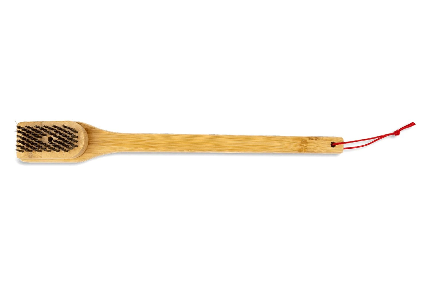 Bamboo Grill Brush by Weber®. Get the best grilling results by starting with clean cooking grates. The Bamboo Grill Brush is designed to easily and efficiently clear away baked-on food, grease and debris from grates of all sizes. The angled bristle head allows you to brush away stuck-on food without being too close to the heat. Use this grill brush to clean your grates before each use so that your grill lasts longer and your next meal is as delicious as the one before.
