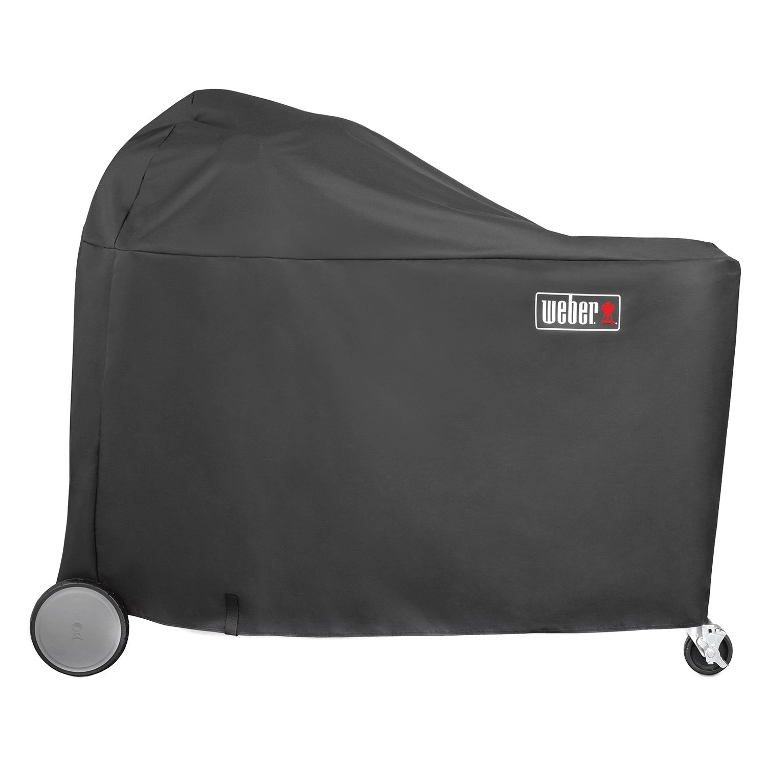 Premium Grill Cover for Summit Kamado S6/Summit Charcoal Grilling Centers by Weber®. Embrace the pouring rain, freezing snow, and scorching sun. The lightweight yet durable Premium Grill Cover makes it easy to cover and uncover your Summit™ Kamado S6 Charcoal Grill Center or Summit™ Charcoal Grilling Center. Its fastening straps keep it from blowing into your neighbor’s yard, and water-resistant material helps maintain a clean, sleek surface.